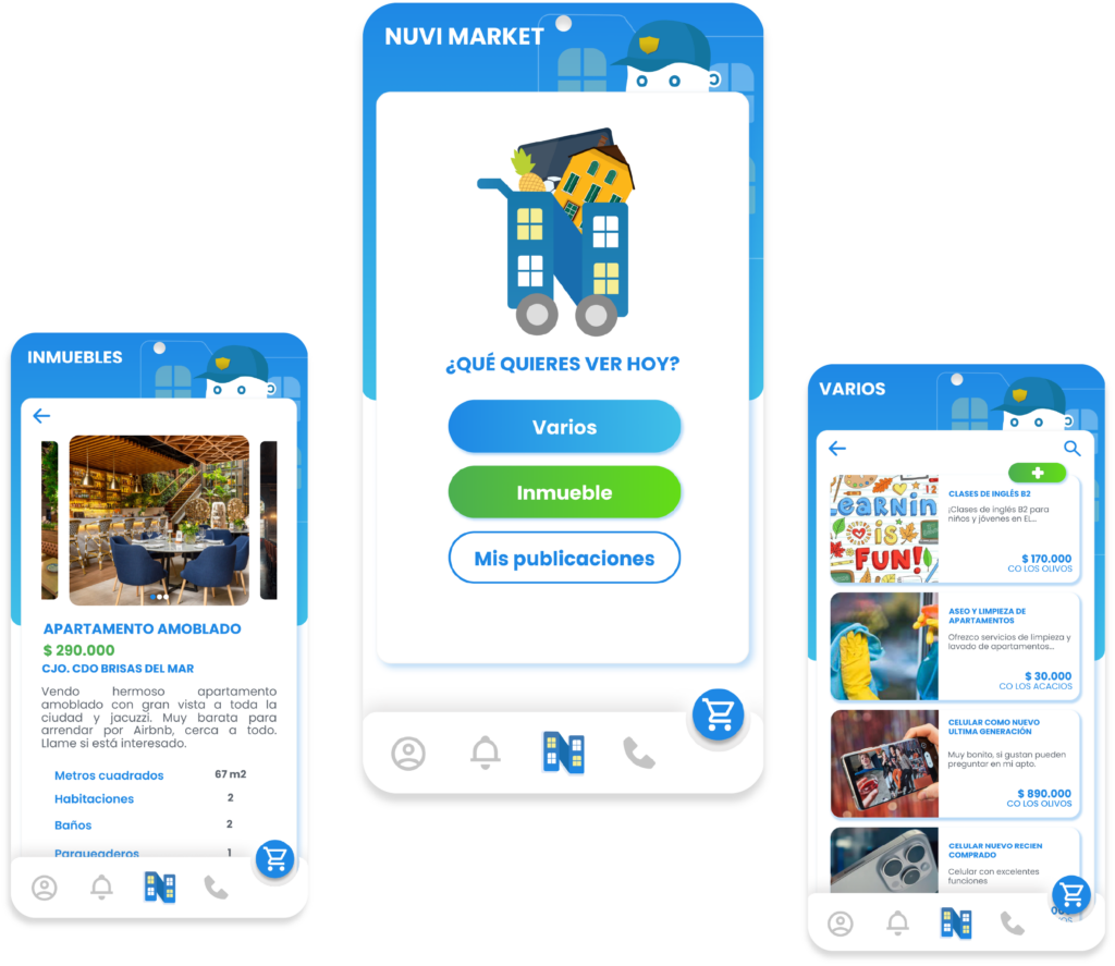 Nuvi Market permite a los usuarios ofrecer servicios, productos o inmuebles dentro de la comunidad, creando un ecosistema de confianza y colaboración entre los usuarios.