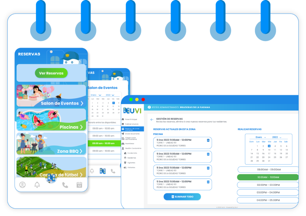 Optimiza la gestión de espacios comunes. Nuvi te permite gestionar la reserva de amenidades como salones, piscinas o canchas, asegurando un uso ordenado y eficiente de los recursos del condominio.