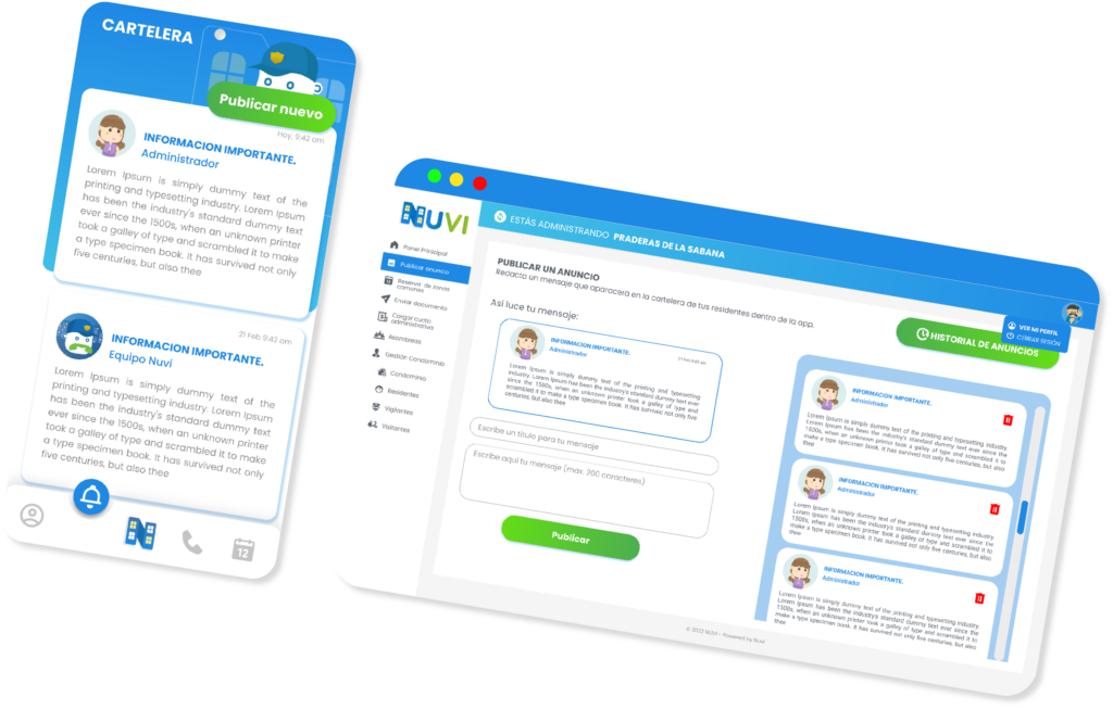 Informa a los residentes de manera efectiva. Publica noticias, anuncios y eventos en la cartelera digital para que todos estén siempre informados de lo que ocurre en el condominio.