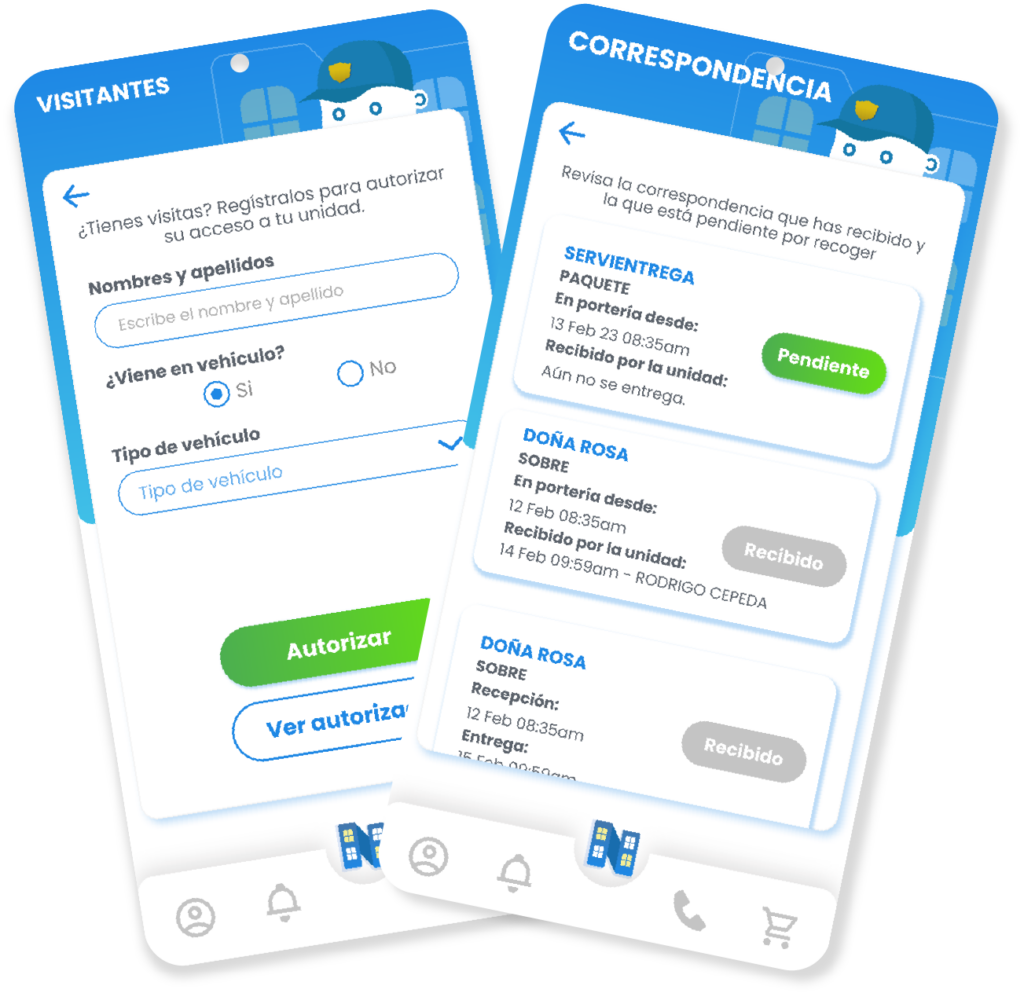 Control total de acceso y entregas. Lleva un registro detallado de los visitantes, genera ingresos a través del control del tiempo de parqueo de los vehículos y gestiona la correspondencia de los residentes de forma rápida y eficiente desde la app.