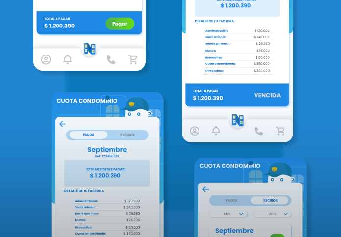 Tus residentes podrán encontrar en la aplicación recibos digitales para realizar el pago en línea de sus cuotas administrativas.
